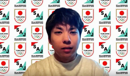 ミラノ・コルティナ五輪を控え、オンラインで記者会見するスノーボード男子ハーフパイプの平野流佳。「今までで一番いい滑りをして、それが金メダルにつながれば」と抱負を語った=3日 【時事通信社】