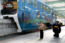 17日に行われた同車両出発式で、小池百合子都知事は「国内外の皆さまにラッピング車両に乗ってもらい、多摩にある30市町村の魅力に触れていただければ」と呼びかけた。