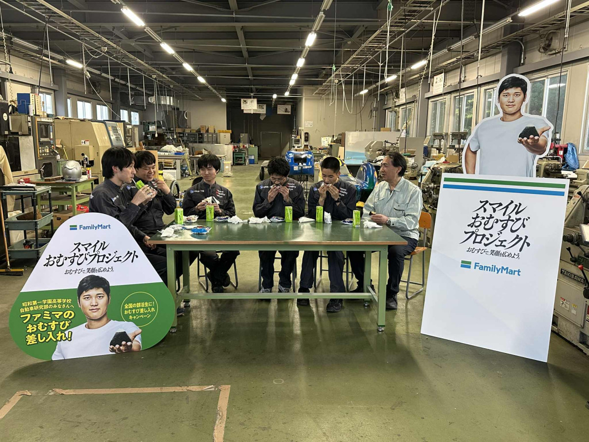 ファミリーマートが11月19日、昭和第一学園高校(立川市栄町2)自動車研究部へに大谷選手パッケージのおむすびを贈呈した。