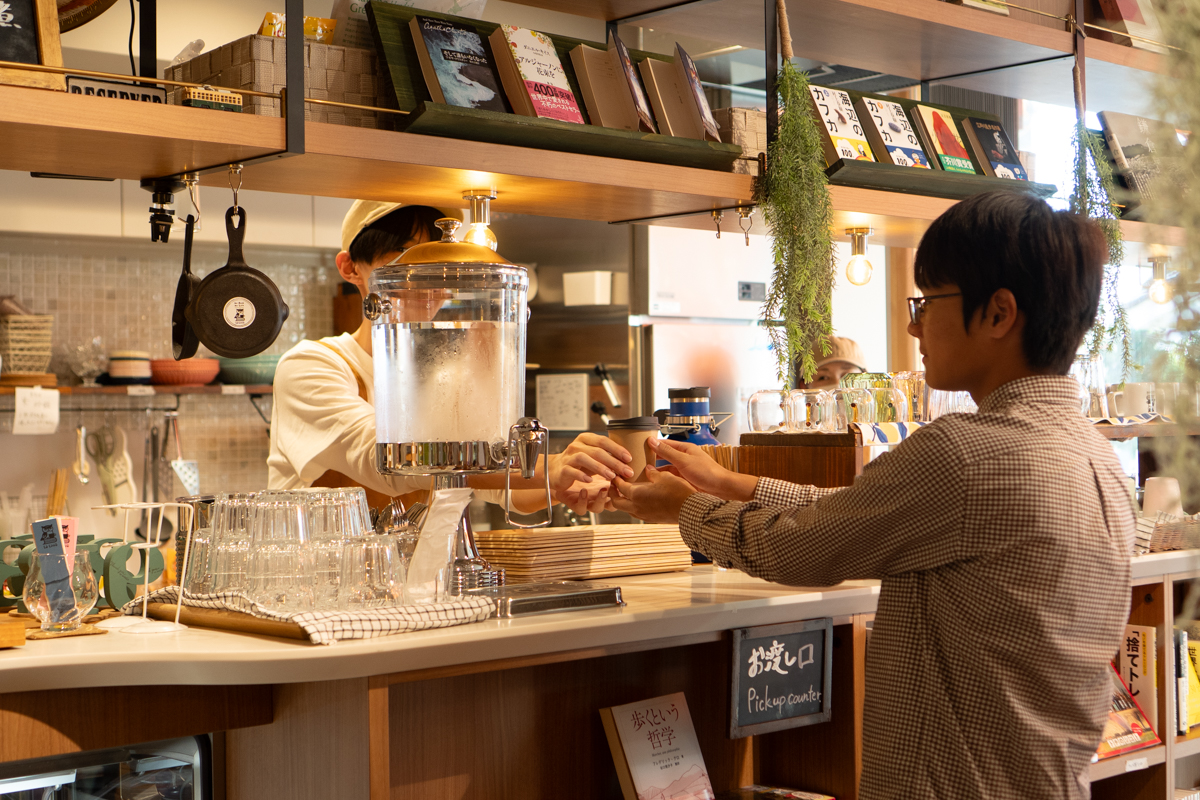 ドリンクやサンドイッチのテークアウトも。施設のテラスも利用できる。