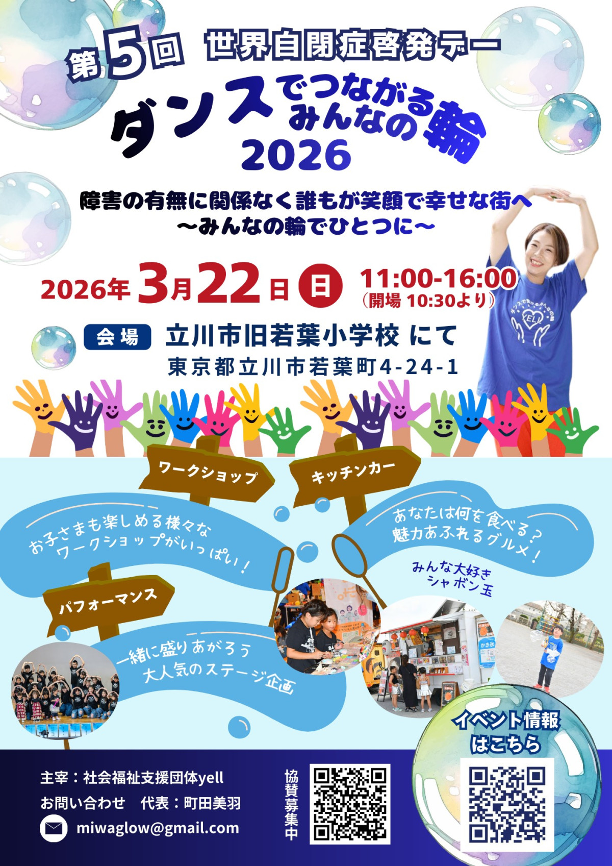 ダンスイベント「第5回 世界自閉症啓発デー ダンスでつながるみんなの輪2026」が3月22日、立川の旧若葉小学校(立川市若葉町4)で開催される。
