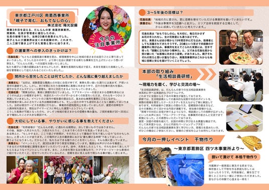 また、本部主催の『生活相談員研修』や、新たに開業した『だんらんの家 西所沢』などの記事も合わせて掲載しております。