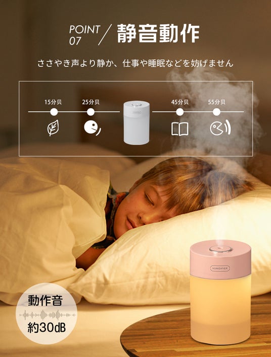 ● 寝室:静音×ナイトライトで快適な睡眠をサポート