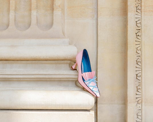 本ポップアップでは、ロココ様式の優美な装飾やマリー・アントワネットのアイコニックなスタイルに着想を得たシューズを中心に展開。柔らかなパステルカラーを基調としたカラーパレットに、リボンやプリーツ、フラワーモチーフなど繊細なディテールをあしらい、ブランドの職人技とファンタジーが融合したコレクションです。